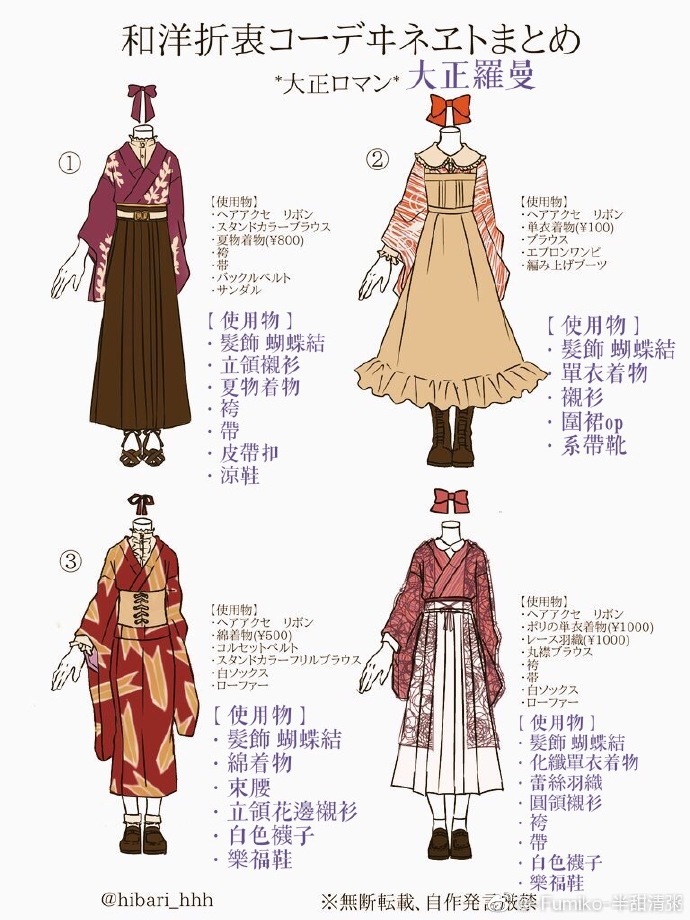 授權轉載 和洋折衷的和服洋裝混搭整理 分為日常 蘿莉塔 大正浪漫與潮流4種風格進行介紹 日常可以參考一下w 和服超话 原作者 Twi Hibari Hhh